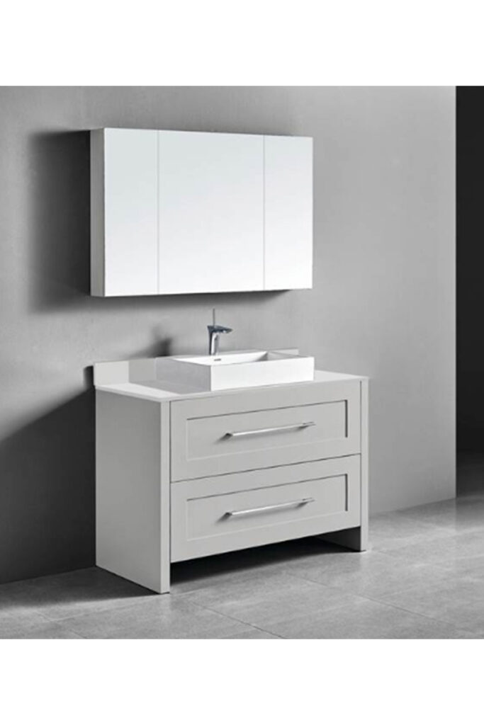 The Madeli Retro 48″ Free Standing Cabinet in Whisper Grey is a true embodiment of timeless beauty meeting modern functionality. This bathroom storage cabinet is more than just a storage solution; it’s a statement piece that enhances your bathroom’s decor. Its clean lines and subtle grey finish evoke a sense of classic elegance, while its spacious interior offers ample storage for all your bathroom essentials. The combination of aesthetics and practicality makes this cabinet an ideal addition to your bathroom space.