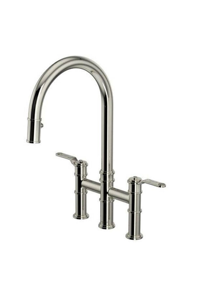 The Rohl Armstrong Pull-Down Bridge Kitchen Faucet is more than just a beautiful fixture; it’s a workhorse in your kitchen. Its high-quality construction ensures durability, and the pull-down spray head makes tasks like washing dishes and filling pots a breeze. Whether you have a traditional or modern kitchen, this modern kitchen faucet complements a variety of design styles. Elevate your kitchen’s aesthetics and functionality with the Rohl Armstrong faucet.
