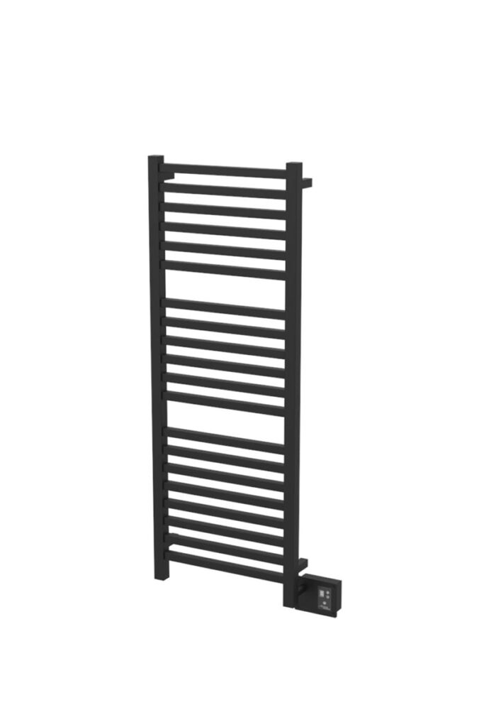 The Matte Black finish of the Amba Quadro Towel Warmer sets it apart from standard warm towel racks and places it among the top-tier bathroom towel warming racks. Whether you need a wall mount towel warmer or prefer a wall-mounted electric towel warmer, this product offers both options.