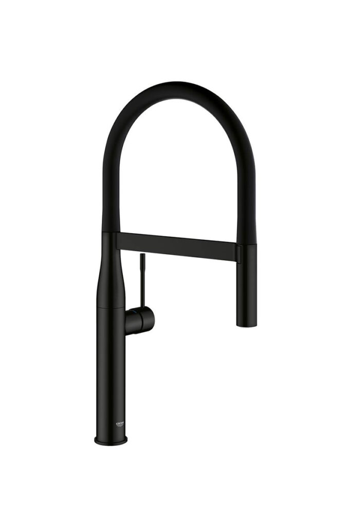 The Grohe Essence Semi-Pro Dual Spray Kitchen Faucet in Matte Black a European-style, deck-mount faucet that serves as a single handle, single hole, gooseneck bridge-style kitchen faucet with a high-arc design. If you’re planning to remodel your kitchen or to upgrade your current faucet, it’s an excellent choice. The matte black finish makes it perfect for modern farmhouse and contemporary kitchens. It also works well in vintage-inspired kitchens to add a touch of elegance. The pull-down spray head makes it easy to clean large pots and pans, and the dual-spray function can handle any task. This faucet is made with high-quality materials to ensure durability and longevity. The ceramic cartridge provides smooth, precise control of water flow and temperature. The flexible hoses provide a secure and leak-free connection. It’s easy to install— even if you’re not a DIY expert.