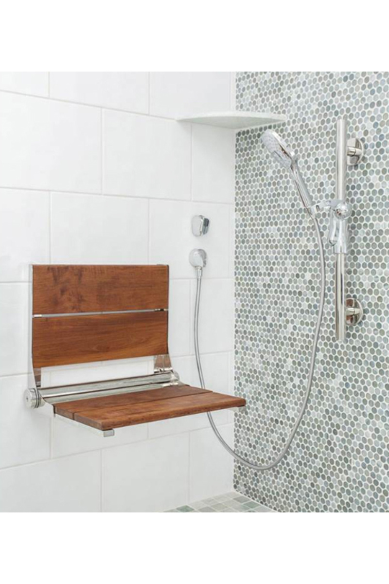 Health at Home 18″ Teak Seat with Polished Stainless Frame