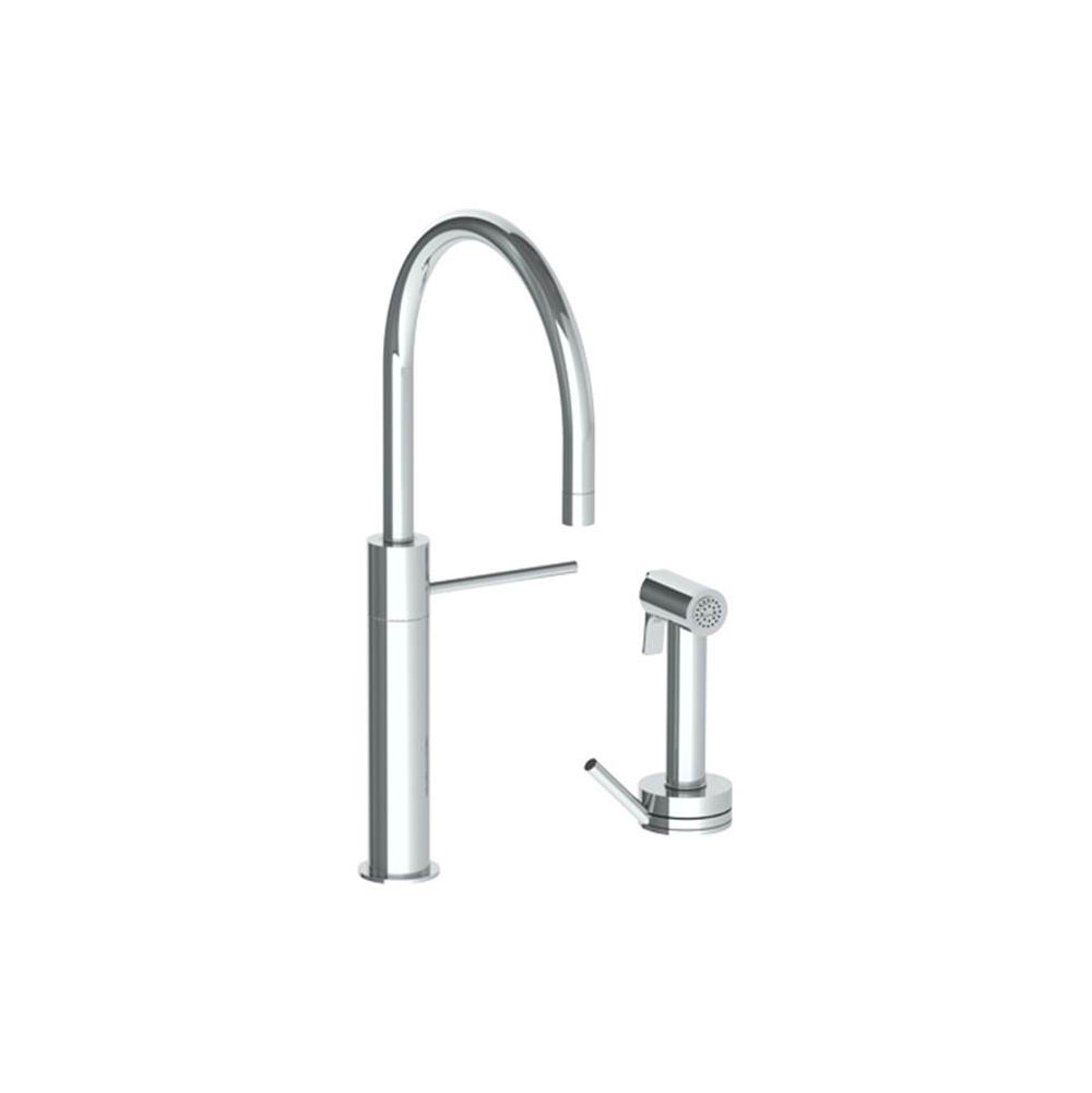 Watermark Deck Mounted 2 Hole Gooseneck Kitchen Set – Includes Side Spray with Integrated Mixer