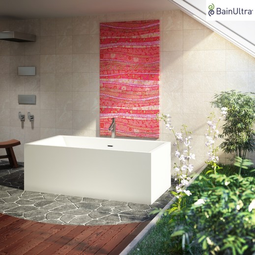 BainUltra®, a Quebec company, pays tribute to classic cubic design with the revelation of its newest therapeutic bath collection, The NokoriTM. These freestanding tubs capture the purity of minimalist design with a geometric silhouette that blends with nearly any architectural style. Simple rectangular lines permit a remarkable flexibility of design, allowing the tub to be placed floating away from the wall or fitted against one, two or three walls, creating a spacious or cozy bathing experience as desired.