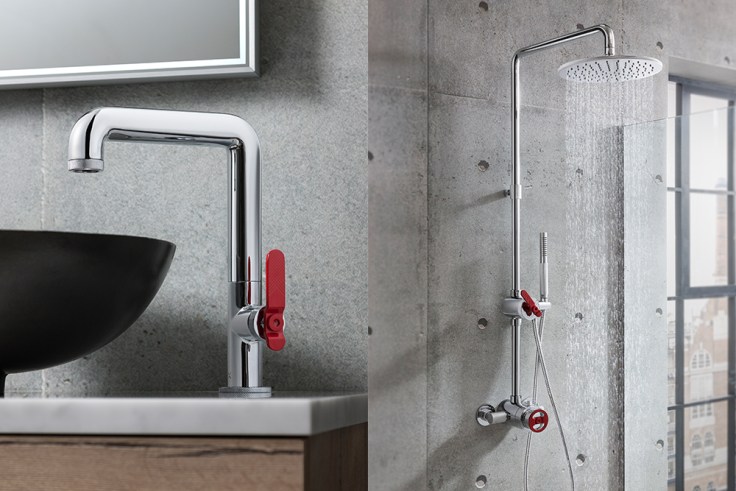 For those with a penchant for bold design, opt for the UNION Red Lever. Featuring the range’s exquisite knurled surface, this confident pop of color complements all brassware finishes in the collection.