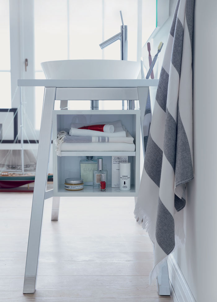 Philippe Starck originally crafted the Cape Cod bathroom range in 2015 with the relaxed elegance of New England in mind. Cape Cod Guest preserves this same sense of refinement with the vanity’s high- gloss white top, chrome feet, and a proportionate above – counter basin (27 ½” x 19″). Made with expertly crafted DuraCeram ® , the washbasin is available in Glossy White and a new White Satin Matte. Cape Cod Guest rounds out its 2019 offerings with a narrower mirror option (17 ¾” x 1 ¾”) available with optional LED lighting. Matching Cape Cod’s original modern look, the new mirror pairs seamlessly with the furniture.