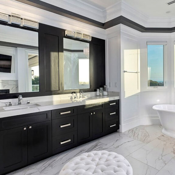 We’ll take you through our process, which will include a careful combination of planning, creativity, and collaboration as we help your dream bathroom take shape. We’ll be there every step of the way, from helping you choose the right custom or semi-custom bathroom cabinets to picking the perfect hardware for the new bathroom.