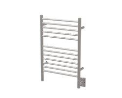 The Jeeves Model E Straight towel warmer features 12 classic cylindrical bars, ideal for warming and drying two towels efficiently. Designed for continuous, energy-efficient operation with internal liquid heating, it requires hardwired installation by an electrician and must be wired to a switch.