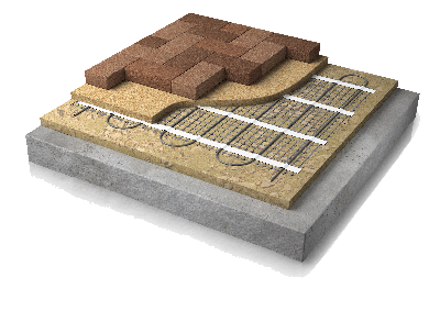 Heated walkway pavers offer the best of both worlds: style and function. During a typical paver installation snow melting mats or cables are laid on a drained gravel base followed by a layer of sand or fine gravel. This layer should be at least 1″. Once this is done, the pavers can be laid.