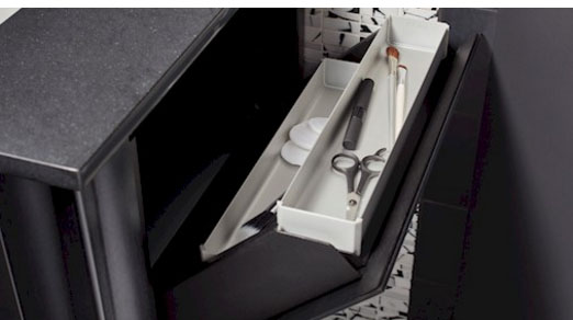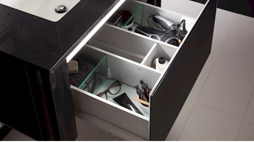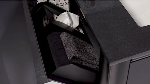 Smart design maximizes storage space and offers a luxurious feel while separating items from plumbing.