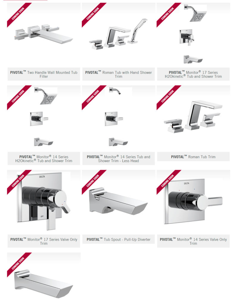 “From Tokyo and London to Basel and Brasilia – striking, international architecture influenced the Pivotal collection for a look that is both dynamic and daring,” noted Clinton Cardinal, Delta product manager. “As a result, the collection delivers a confident, contemporary style with diverse lines and curves, perfect for modern enthusiasts seeking a bold statement for the bath.