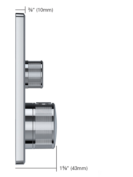With a depth of only 3 ⁄8” (10 mm), its super slim design makes the GROHE SmartControl wall plate both elegant and compact.