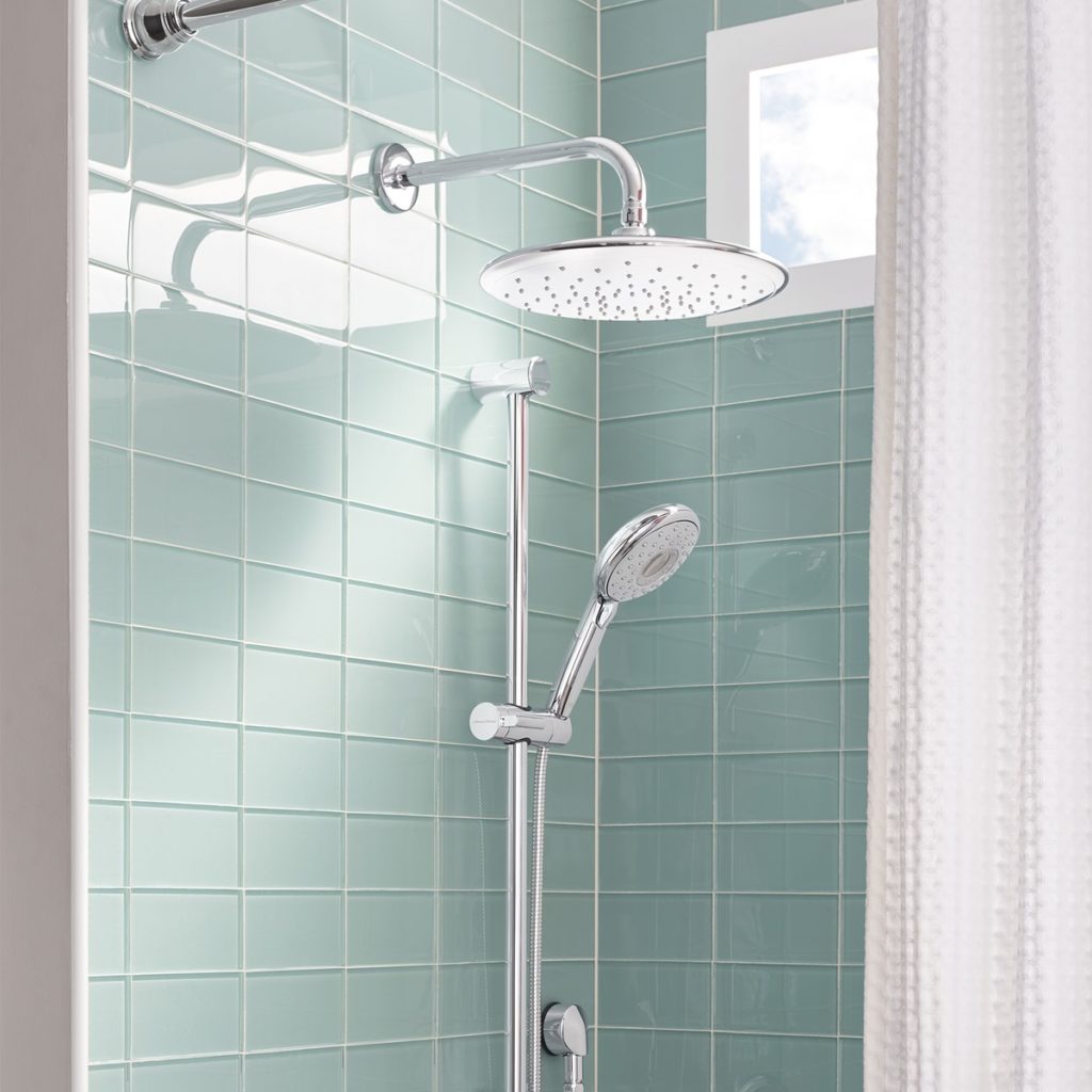 The Spectra+ Duo model combines a 9 ½-inch fixed showerhead and 5-inch multi-function hand shower all in one sleek fixture. Designed to deliver a drenching experience through a superior width of water coverage across the user’s body, the Spectra+ Duo shower system offers the widest spray coverage of any two-in-one showerhead on the market. This functional design allows homeowners to enjoy two convenient showering options without breaking any wall tile for remodeling.