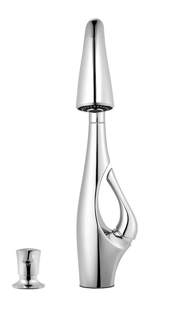 The art of home now shines in the kitchen, with the introduction of Indira. One graceful line is the hallmark of this new piece that’s the very first of its kind – never before has a faucet handle been integrated into the whole to create a single, fluid form.