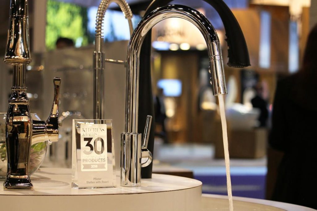 Pfister’s Stellen with React was named one of Better Homes and Garden’s “Beautiful Kitchens & Baths” 30 most innovative products in 2018. Pfister was presented the award at KBIS, and we couldn’t be more proud. We have a wonderful team of designers and engineers that created such a beautiful faucet, with such innovative technology. We are thrilled to share this award with the whole Pfister team. Learn more about Stellen and its react technology here.