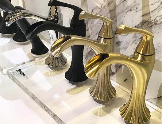 “Rhen in French means Queen, and we certainly think that describes this collection well,” says Tim Burdett, Senior Marketing Manager – Wholesale. The designer was inspired by her grandmother’s wedding dress and wanted to give the faucet feeling of vintage, flowing fabric. Rhen is a complete collection with lavatory faucets, bath accessories, floor mount tub filler, and tub and shower, which is offered in four finishes; matte black, chrome, brushed nickel and brushed gold.