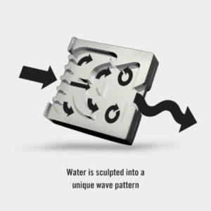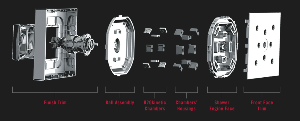 Inside the shower head, water is channeled through a series of strategically placed, highly engineered chambers that create velocity and sculpt the water into a unique wave pattern that blankets the body with luxurious warmth. All this happens without any internal moving parts that could break or degrade over time. It’s the feeling of more water without using more. And it’s revolutionizing the way people think about showers.