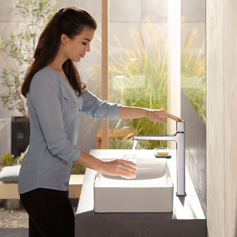 Welcome to the world of parallelism in the bathroom – thanks to hansgrohe. The high-quality Metropol faucet range impresses thanks to its precise, geometric design. In addition to its linear basic forms, Metropol also offers a variety of handles, spout heights and spout lengths. You then have a wealth of design possibilities at your disposal for the sink, bathtub and shower. The lavatory faucet with Select technology is controlled intuitively at the touch of a button, while the freestanding single-hole faucets for the sink and bathtub make an impressive design statement in the bathroom.