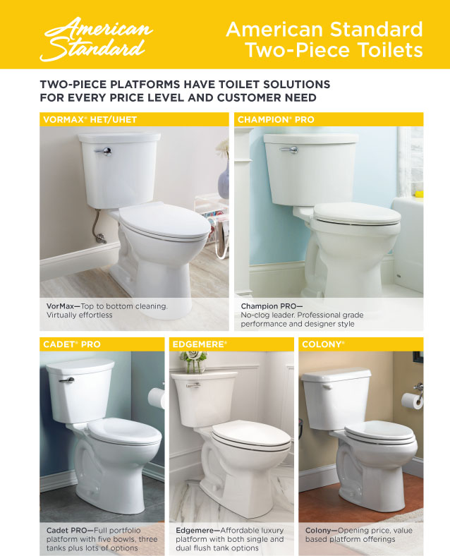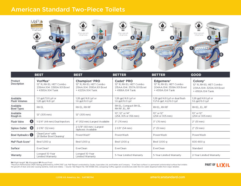 American Standard toilets are industry leaders in performance – both in flushing power and cleanliness – but maybe you’re looking for a little information on the difference between the various flushing platforms?