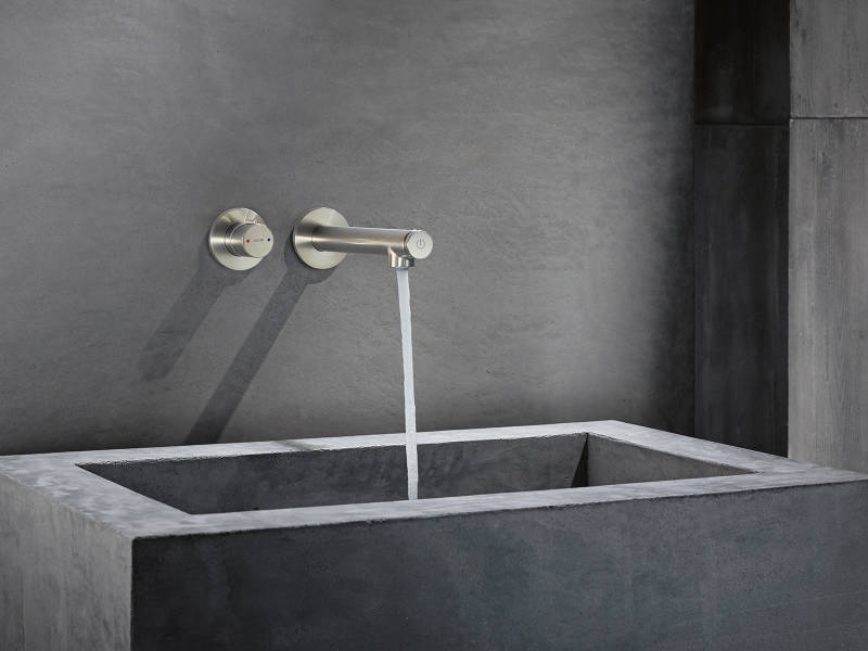 The wall-mounted faucet is the embodiment of traditionalism. A reference to the material used by the original minimalists. Particularly authentic in the Brushed Nickel special finish. Completed by the Select button with its consistently mechanical functionality.