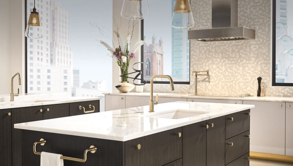 The Litze Kitchen Collection by Brizo® melds a clean, contemporary sensibility with carefully selected details. Intricate knurling and the articulating faucet display meticulous craftsmanship and elegant simplicity.