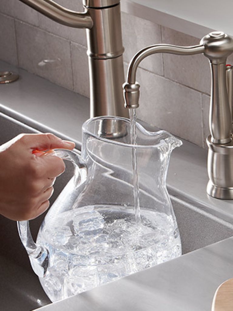 The InSinkErator systems tap right into the water line to provide filtered, great-tasting water right from your instant hot water dispenser. Select a faucet with both hot and cool options to also enjoy filtered drinking water.