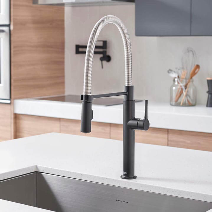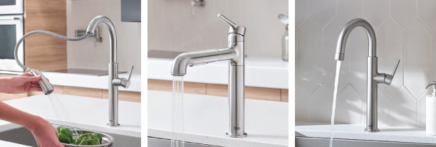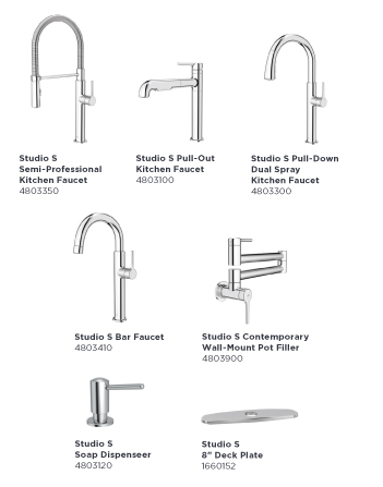 Inside and out, Studio S sets the pace in the busiest kitchen. The contemporary design pairs with versatile innovations and sleek lines for exceptional style and function. Design-matched kitchen faucets pair with coordinating accessories, bar faucets, and a wall-mount pot filler for a total kitchen design solution.
