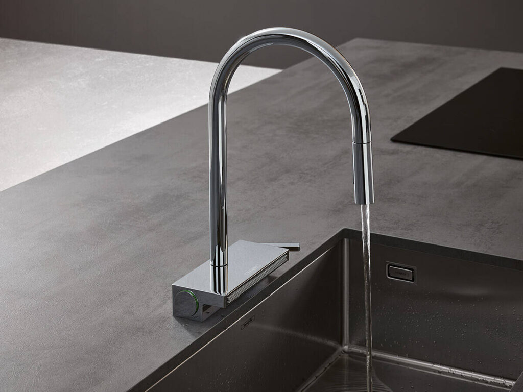 A new era of kitchen taps is upon us with the Aquno Select M81: The tap range wows with the most efficient water use you have ever seen in the hansgrohe kitchen range: Enjoy an optimum workflow at the sink and use water mindfully. The ultimate in functionality and design define a new archetype for the kitchen.