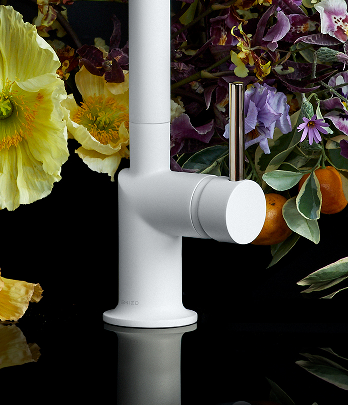 Introducing a new vibrance to the familiar, the kitchen collection features a signature matte-white finish, perfectly contrasting and expanding upon the matte-black finish showcased in the 2012 Jason Wu for Brizo Bath Collection. Subtle details thoughtfully designed and meticulously crafted pay homage to Jason’s work, such as the polished-nickel handle that echoes the base of his mannequins.
