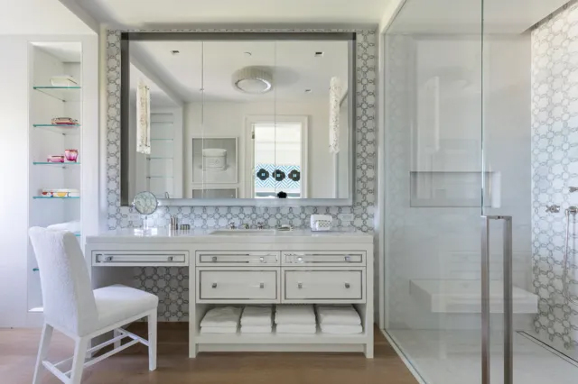 “Start with the most important element — a large soaking tub and/or an oversized shower,” said Jan Rutgers, co-owner of JANGEORGe Interiors & Furniture in Sag Harbor.