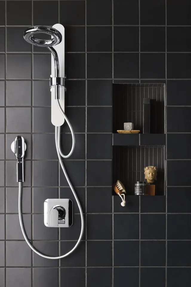 ‣ Nebia by Moen spa shower head. This elegant makes you feel pampered thanks to a tiltable “rainshower” mounted on an adjustable slider that also swivels. The eco-friendly build is available in several designs and finishes, using 45 percent less water while giving you heavenly pressure and two times the coverage of standard showers.