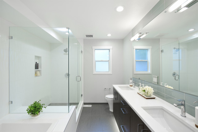 “Problems with air circulation will bring down even the loveliest of bathrooms,” del Popolo says. “Ensure that you specify an exhaust fan within the design to remove excess moisture and odors, and help prohibit the formation of mold in your bathroom. If you’re concerned about noise, check the labelling and choose an exhaust fan with a lower decibel rating.”