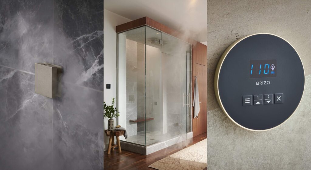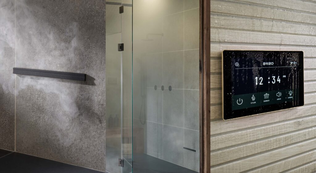 EXPERIENCE FEATURES SENSORIPLUS™ DIGITAL INTERFACE, STEAM HEAD, STEAM GENERATOR (PURCHASED SEPARATELY). COMPATIBLE WITH EXTERIOR CONTROL AND MYSTIX™ SPA OFFERINGS. ADD THE 3-PORT DIGITAL THERMOSTATIC ROUGH FOR THE FULL BENEFITS OF THE SENSORIPLUS™ SYSTEM.