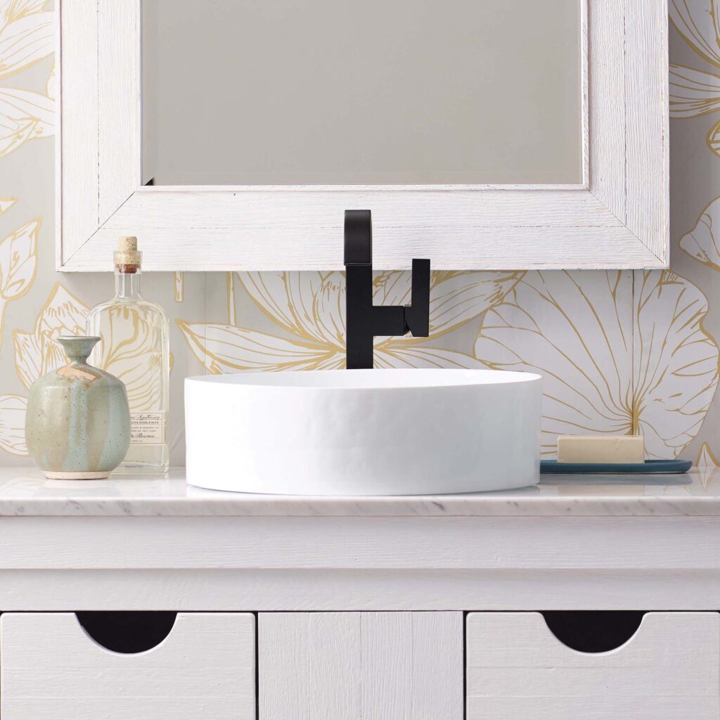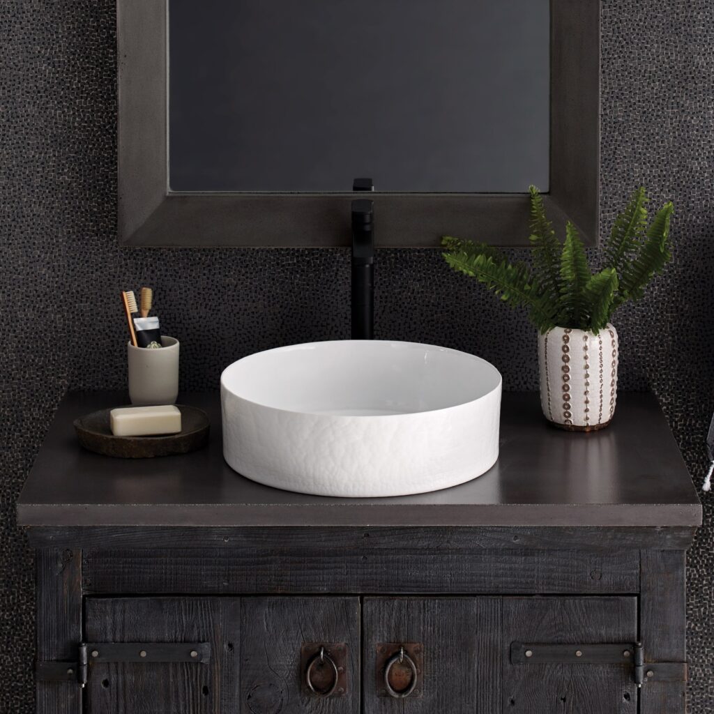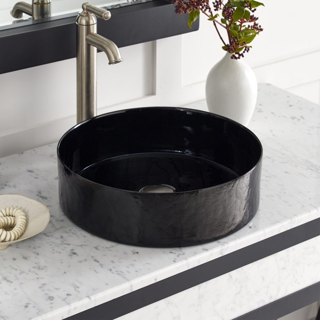 - Vessel sink with vertical sides simplifies cleanup