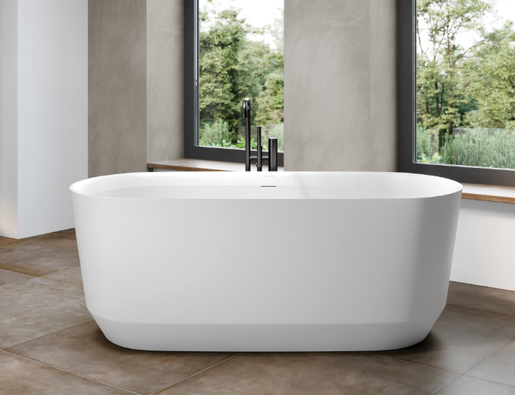 A simple oval shape where the exterior bottom of the tub is chamfered inward, and then matched by a similar detail at the interior top. Also see Venet 1 and 2 vessel sinks.