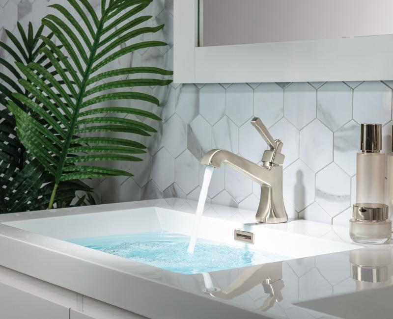 Launched to reconcile classic and modern design tastes, this line will be offered in four fast-ship finishes and includes sink, tub, and shower faucets.