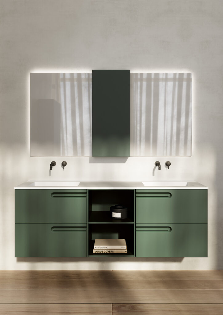 It is a look into nature, present in each of its rounded shapes, its unique handle, in its sinks and mirrors, representing the curves of the mountains and the course of the rivers.