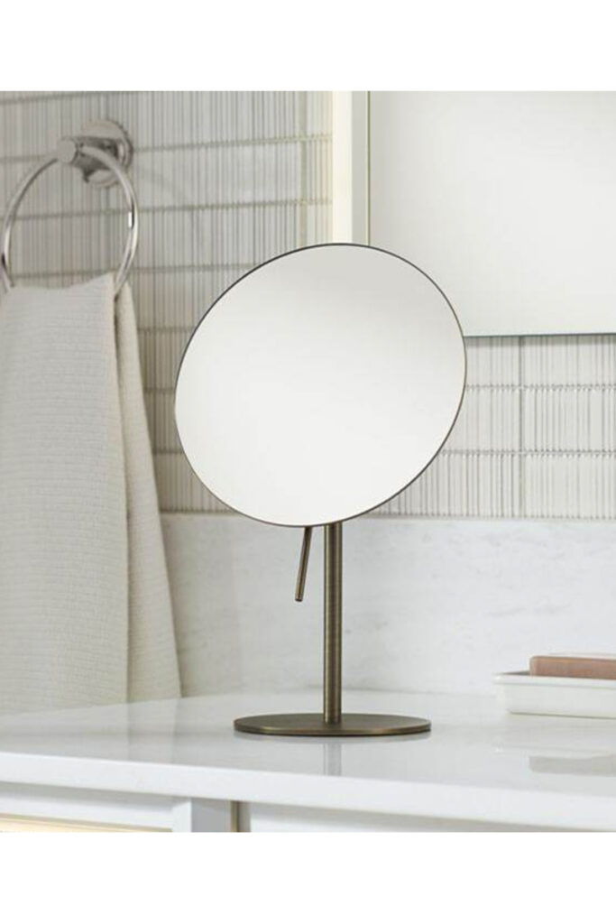 Enhance your grooming routine with the Robern Satin Nickel Freestanding Magnification Mirror, a reliable and high-quality mirror designed to elevate your personal care experience. Featuring 5X magnification, this mirror provides a close-up view that is perfect for detailed grooming tasks. Whether you’re applying makeup, tweezing eyebrows, or perfecting your skincare routine, the magnification feature ensures that you can see every detail with precision and clarity. The Robern Satin Nickel Freestanding Magnification Mirror is designed with convenience in mind. It can be easily adjusted and tilted to your preferred viewing angle, allowing you to find the perfect position for optimal visibility. The mirror’s extendable arm provides additional flexibility and reach, ensuring that you can position it exactly where you need it most.
