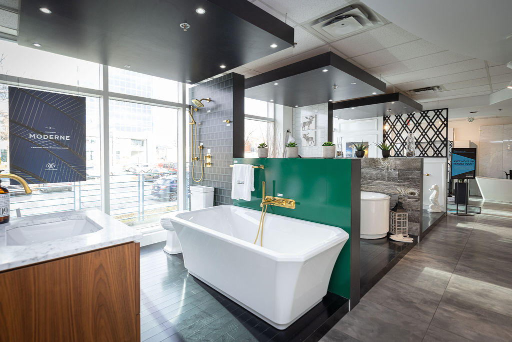Explorez notre vaste salle de montre de 17 000 pieds carrés, où vous pourrez découvrir notre large gamme de plus de 2 550 produits de marques renommées. Afin de vous aider à mieux visualiser vos projets, un « Espace Eau » est disponible pour vous. Vous pourrez ainsi tester les produits et les manipuler vous-même: de la robinetterie de douche, des robinets de lavabos et encore de la robinetterie de bain ! Environ 30 suites d’exposition sont également disponibles pour vous aider à vous projeter dans votre futur espace et trouver l’inspiration pour créer la salle de bain ou la cuisine de vos rêves.