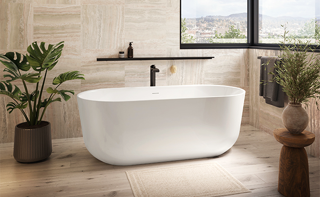 La baignoire autoportante est disponible en deux grandeurs. Qu’elle soit affleurante ou centrale, cette baignoire autoportante ajoutera de l’impact à la salle de bain.