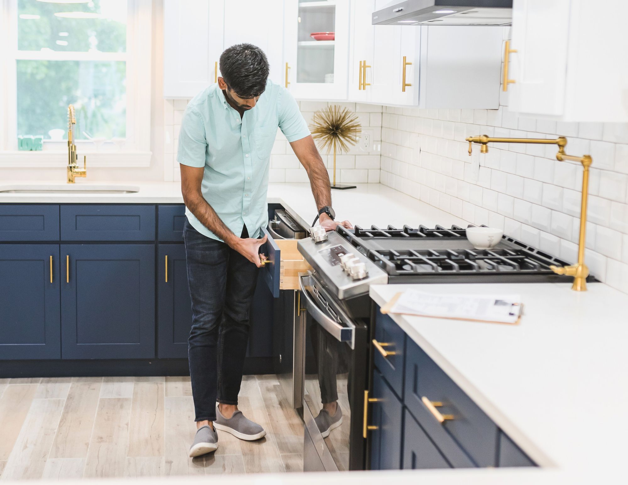 Switching out your cabinet hardware is a simple, easy project that even those with little renovation experience can DIY! Cabinet knobs and pulls may be a small element of your kitchen’s design, but they have a big impact on the practical function of your kitchen. It’s important that your cabinet pulls are the proper size and shape for your kitchen cabinets and drawers. To ensure that your pulls are the proper visual and physical weight for your cabinet or drawer a general rule of thumb is that your cabinet pulls should be one-third the height of your cabinet or one-third the width of your drawer. Make sure that you measure for the holes your previous hardware will leave. It would be easiest to find knobs or pulls to fit the same holes, but if you’re looking for a big change, you can fill and drill holes to move your knobs and pulls as desired.